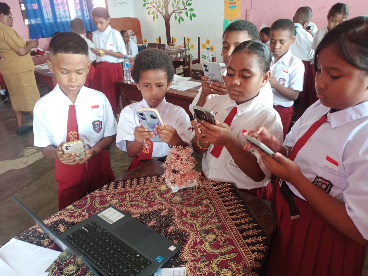 Para siswa kelas IV-VI tampak antusias mengikuti ujian dengan menggunakan gawai masing-masing. Mereka mengakses soal ujian melalui aplikasi Exam Elearning Fakfak yang telah dikonfigurasi agar hanya dapat digunakan untuk keperluan ujian, sehingga keamanan dan fokus peserta tetap terjaga. Dengan menggunakan sistem scan QR Code siswa tidak kesulitan untuk mencari soal ujiannya